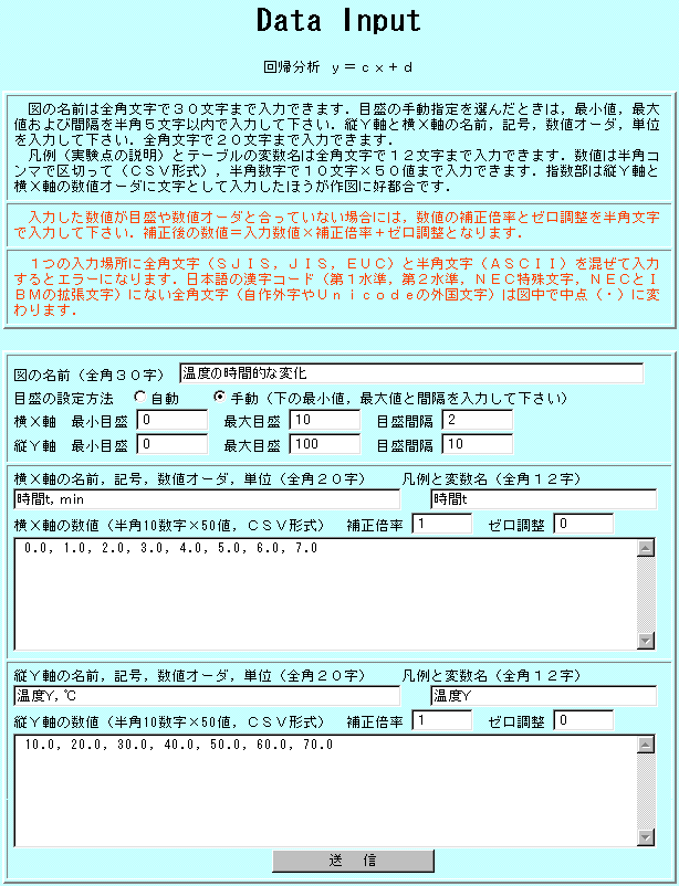図3 CSV形式の入力画面(1本線)