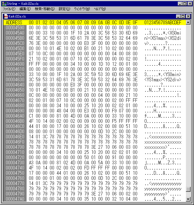 ダミーファィル中の最小目盛,最大目盛,目盛間隔および軸名を表す.