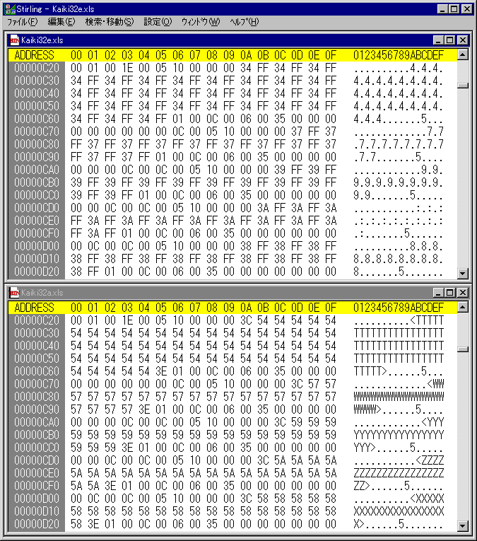図10 文字データに関する基本ファィル(上)とダミーファィル(下)の比較(CSV形式,一部分)